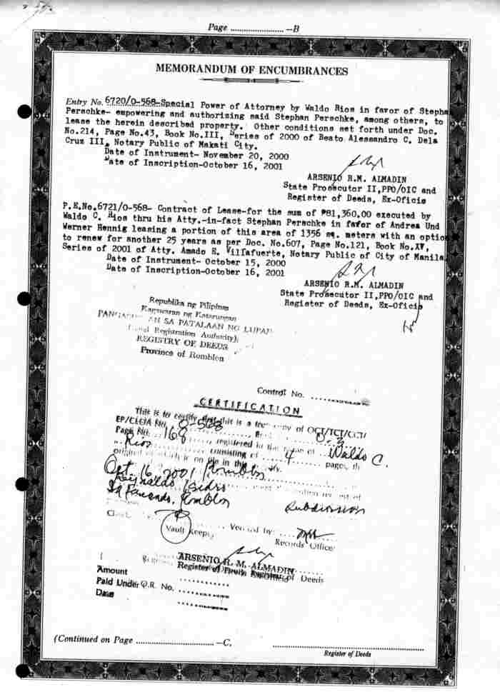 philippinischen Grundbuch eingetragen wurde, und eine Bauvoranfrage positiv